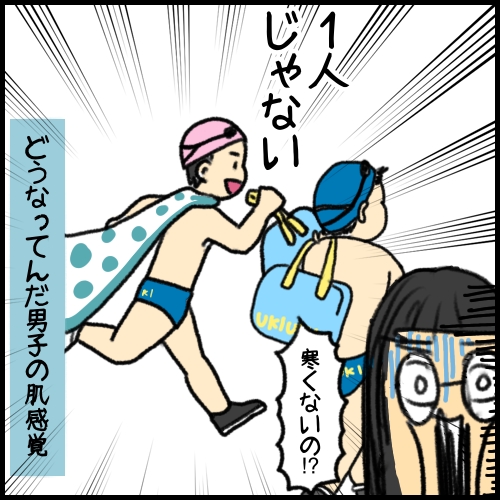 うちの子もスイミング通っていますが、冬場は水着オンリーで来てる子見かけません!笑